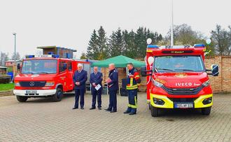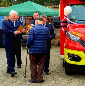 Am Samstag den 08.04.2023 fand die offizielle Fahrzeugübergabe des neuen TSF W an die Feuerwehr Wiendorf statt. Hierzu fanden sich Kameraden und Kameradinnen aller Feuerwehren des Amtes Schwaan auf dem Gelände der Feuerwehr Wiendorf ein. Weiterhin erschienen der Stellvertretende Kreisbrandmeister Holger Gardinger, der Amtswehrführer Thomas Kulow-Krehl und der Bürgermeister von Wiendorf, Frank Heidelk. Nach der Begrüßung und einer kurzen Rede des Wehrführers Ronny Reimer sowie des Bürgermeisters, wurde unser neues Fahrzeug durch seinen Namensgeber getauft. Er heißt jetzt „uns Ulli“, nach Ulrich Heidelk. Mit 64 Jahren und 100 Tagen (davon 10 Jahre als Wehrführer) ist er längstes Mitglied der Wiendorfer Feuerwehr. Sichtlich gerührt übernahm er die Taufe. Anschließend wurden Glückwünsche ausgesprochen und dann endlich konnte von allen das Fahrzeug auf Herz und Niere geprüft werden. Dieses Fahrzeug der Firma Ziegler ist erst das Zweite diesen Types (Z Cap) in M-V. Die beiden Wiendorfer Maschinisten standen bereit, um die Besonderheiten des Fahrzeugs zu erläutern. Bei Getränken und Bratwurst wurde noch lange gefachsimpelt. Wir, die Freiwillige Feuerwehr Wiendorf, möchten uns hiermit nochmals bei allen Wehren des Amtes, dem Kreisbrandmeister, sowie der Amtswehrführung Schwaan und der Gemeinde Wiendorf für Ihre Wünsche und Geschenke bedanken. Ein Dankeschön geht auch an den Förderverein der Freiwilligen Feuerwehr Wiendorf für´s Grillen!
