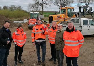 Die Bauarbeiten am Radweg kommen nach der Winterpause weiter voran. Ein wichtiges Instrument sind nach wie vor die regelmäßigen Baustellenberatungen. Vertreter der Auftraggeber (SBA Stralsund), Auftragnehmer (Eurovia Verkehrsbau GmbH) und Bauüberwachung (Mecklenburg. Ing.-Büro f. Verkehrsbau GmbH) tauschen sich mit betroffene Behörden, Institutionen und Unternehmen wie z.B. der Regionalbus Rostock GmbH oder dem Wasser- und Bodenverband, auch unter Einbeziehung des Schwaaner Amtsvorstehers, vor Ort über den aktuellen Stand der Baumaßnahmen aus und besprechen den weiteren Fortgang. Das größte Stück Arbeit ist geschafft, aber bekanntlich steckt der Teufel im Detail. Das wurde auch auf der Beratung am 03. April (s. Foto) wieder einmal deutlich. Die Verantwortlichen sind aber trotz z.B. baulicher Behinderungen und temporärer Engpässe um schnelle Lösungen bemüht.