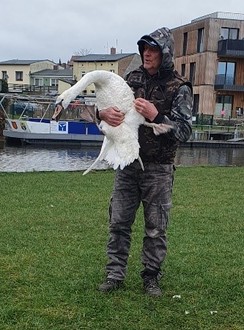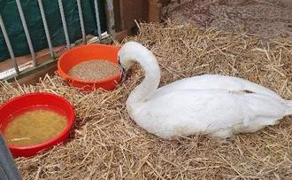 Besorgte Schwaaner Bürger wandten sich wegen des verletzten Schwans an der Warnowbrücke an den Tierschutzverein Schwaan e.V. sowie an den Wildtierschützer Peter Koerner aus Güstrow vom Notruf für Wilde Tiere-Rechte für Tiere e.V. und baten um die Rettung des Schwans. Am 30. März wurde der Schwan mit einer Verletzung am hinteren linken Bein von Peter Koerner an der Warnowbrücke eingefangen und am 31. März wurde er erfolgreich bei einem Güstrower Tierarzt operiert. Nach der Operation wurde der Schwan zur Genesung in einem gesicherten Zwinger (Schutz vor Fuchs und Waschbär) des Tierschutzvereins Schwaan untergebracht und bekommt dort regelmäßig Medikamente, bis er nach etwa 10 Tagen von Peter Koerner/Notruf für wilde Tiere wieder an der Warnowbrücke ausgesetzt werden kann. Danach wird der genesene Schwan als Schwaaner Wappentier mit seiner Anwesenheit wieder viele Bürger und Gäste erfreuen können.