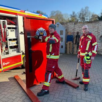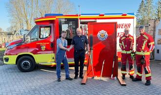 Die Feuerwehr Wiendorf freut sich über eine besondere Spende: Eine speziell angefertigte Übungstür, die es ermöglicht, unter verschiedenen Bedingungen das gewaltsame Öffnen von Türen im Feuerwehrdienst zu trainieren. Dank des Engagements von Kamerad und stellvertretendem Wehrführer Maikel Hahn wurde die Tür in Zusammenarbeit mit der Bauschlosserei F. Huckstorf hergestellt. Christoph Huckstorf sowie Feuerwehrkamerad Jens Ihring setzten das Projekt in die Tat um. Eine solche Übungstür kostet im Fachhandel zwischen 5.000 und 8.000 Euro – umso wertvoller ist die Eigenanfertigung und die großzügige Spende für die Feuerwehr.