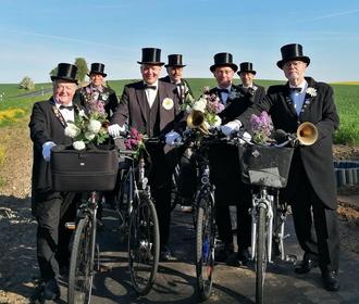 Den diesjährigen Himmelfahrtstag nutzten wiederum viele Menschen für Ausflüge in Familie. Auch reine Herrentagsgruppen waren mit bzw. auf den verschiedensten Gefährten unterwegs, wie Motorräder, Kutschen, Bollerwagen, Traktorengespanne. Dabei war auch eine Grüppchen in historischem Outfit auf Fährrädern, darunter auch der Schwaaner Amtsvorsteher. Die Radler aus Schwaan sowie Laage und Umgebung bereisen in wechselnder Besetzung schon seit Jahren am Herrentag interessante Regionen in Mecklenburg-Vorpommern. Darunter waren Strecken und Wege aller möglichen und auch unmöglichen Beschaffenheit, die sie zu Klöstern, Kirchen, Herrenhäusern und anderen geschichtsträchtigen Orten führten. Mit diesen umfangreichen Erfahrungen im Hintergrund hatten sie sich vorgenommen, auf ihrer diesjährigen Tour von Schwaan über Ziesendorf (Gutshaus), Heiligenhagen (Feldsteinkirche) und Hohen Luckow (Gutshaus und -park, Patronatskirche) den neuen Radweg nach Ziesendorf einem Test zu unterziehen. Obwohl noch nicht abnahmefertig, ist die Strecke bereits nahezu durchgehend befahrbar und wird bereits seit Wochen von vielen Radlern, auch aus Gründen der Verkehrssicherheit, genutzt.