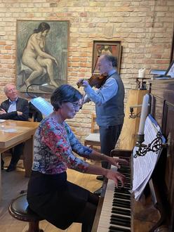 Das Hofcafé am 13. April auf dem Schelpbrookhof in Letschow war ganz dem „Walzerkönig“ gewidmet - und das aus gutem Grund: 2025 feiern wir den 200. Geburtstag von Johann Strauss. Seine Musik ist pure Lebensfreude: Vom weltberühmten Donauwalzer über das temperamentvolle „Wiener Blut“ bis hin zu beschwingten Polkas - seine Melodien begeistern bis heute ein internationales Publikum. Für echtes Wiener Kaffeehausflair sorgten an diesem Nachmittag Mihai Belu, ehemaliger erster Geiger der Norddeutschen Philharmonie Rostock, und seine Frau Theodora Belu am Klavier, erfahrene Korrepetitorin am Volkstheater. Mit viel Gefühl und Virtuosität brachten sie die heitere Klangwelt von Strauss auf die Bühne - und mitten ins Herz der Zuhörer. Die beschwingte Stimmung sprang schnell über: Einige Gäste hielt es nicht auf den Stühlen - sie schwangen spontan das Tanzbein im Dreivierteltakt.