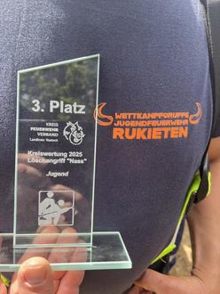 Es ist wieder so weit: Der Feuerwehrsport beginnt für die Jugendfeuerwehr Rukieten. Am 10. Mai nahmen unsere engagierten Nachwuchsfeuerwehrleute am MV-Cup in Neustadt-Glewe teil. Mit einer hervorragenden Zeit von 30,52 Sekunden sicherten sich die Kids den dritten Platz und konnten somit zum ersten Mal einen Pokal vom MV-Cup mit nach Hause nehmen. MEGA STARK! Es war ein unvergesslicher Moment für alle Beteiligten und ein wunderbarer Start in die Wettkampfsaison. Nur zwei Wochen später wartete ein weiteres spannendes Event auf unsere jungen Feuerwehranwärter. Beim Kreisausscheid in Zernin traten sie erneut an und zeigten eine beeindruckende Leistung. Mit einer fantastischen Zeit von 25,63 Sekunden verfehlten sie nur knapp – um gerade einmal 0,5 Sekunden – den zweiten Platz. Dennoch gab es auch hier einen wohlverdienten Pokal für den dritten Platz. Diese Erfolge sind ein Zeichen für den großartigen Teamgeist und die harte Arbeit, die die Kinder in die Vorbereitung gesteckt haben.