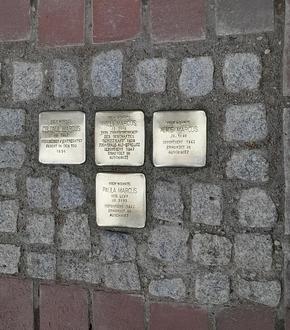 Seit 2014 erinnern Stolpersteine an verfolgte und ermordete jüdische Bürger der Stadt Schwaan. Das verdanken wir privatern Spendern und einem Projekt der Schwaaner Prof. Franz-Bunke-Schule 2019/20. Die Stolpersteine für den Arzt Dr. Paul Markus, seines Bruders und des letzen Vorsitzenden der Isrealitischen Gemeinde Schwaan Willi Marcus, seiner Ehefrau Paula Marcus und der Schwester von Paul und Willi, Alice Markus, befinden sich im Gehweg am Pferdemarkt 7.