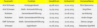 Veränderungen bei gewählten Funktionen im Amt Schwaan, im 1. Halbjahr 2023