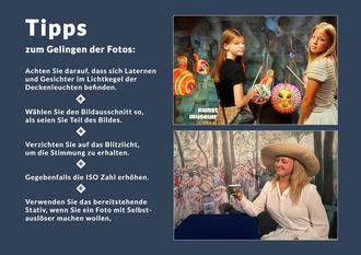 Zusätzlich zu dieser Ausstellung gibt es wieder einen Malbereich für Groß und Klein mit dem Thema „Sommerfrische“. Zwei Photopoints laden die Besucher ein, sich kreativ zu betätigen: Hier können sie die Szene „Schulausflug“ von Brockhusen nachstellen oder sich in das Bild „Laternenkinder“ von Rudolf Bartels hineinversetzen.