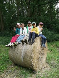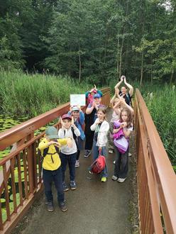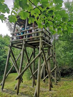 Er führte uns durch tiefe Wälder, vorbei an romantischen Flüssen, über Wiesen und Felder. Unterwegs begegneten wir kleinen Käfern, einer großen Schafherde, netten Wanderern, kleinen Hunden und vielen Vögeln und Insekten. Alles wurde untersucht und begutachtet oder gestreichelt, denn Zeit spielte keine Rolle. Der Weg war das Ziel! Das Highlight waren der Aussichtsturm und die sprechende Bank.