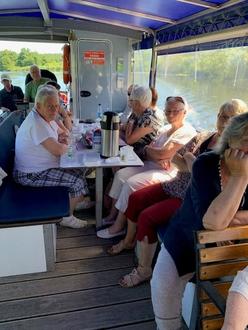 Natürlich wurde auch für das leibliche Wohl gesorgt. Kaffee, Kuchen und ein Mittagsimbiss wurden gereicht. Es wurde beobachtet, gelacht und geredet, über Gott und die Welt. Die Sonne spiegelte sich im Wasser, kleine Wellen schlugen an den Bootsrumpf.