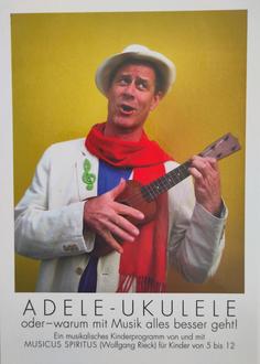 In spielerischer Weise werden Lieder präsentiert - und müssen natürlich kräftig mitgesungen werden -, die sich um die ganze Welt des Singens und Musizierens drehen. Dabei werden etliche kuriose Instrumente (singende Säge, Meerestrommel, Lotosflöte, Ukulele, Flügelhorn, Bajo, Dröthe u. a.) präsentiert. Adele, die natürlich Ukulele spielt, führt mit ihrem Freund, MUSICUS SPIRITUS (Wolfgang Rieck). durchs Programm.