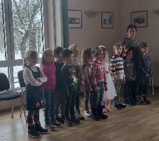 Die Eichhörnchengruppe bereitetesich mit diesem Repertoire auf bevorstehende Auftritte vor. Mit diesem umrahmten sie die Rentnerweihnachtsfeier der Gemeinde, brachten die Augen der Tagesgäste der ortsansässigen Tagespflege „Vitalis" zum Leuchten.
