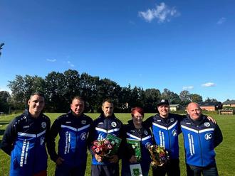 Kremmin: Ehre wem Ehre gebührt, zum Punktspiel in der Kreisoberliga zwischen der BSG Empor Grabow e.V. und dem SC Parchim II am 15.09.2024 hatte sich Besuch vom Kreisfußballverband angekündigt. Vor dem Spiel überreichte der Ehrenamtsbeauftragte des KFV Frank Tiede unter großem Beifall die Ehrennadeln des Verbandes in Silber an Nicole Brüggert und Tim Klöpper von der BSG Empor. Die Geehrten wechselten im Jahr 2016 von Eintracht Ludwigslust, wo sie schon in der Nachwuchsabteilung tätig waren, zur BSG Empor Grabow e.V.. Sportfreundin Brüggert übernahm dort als Trainerin die Kleinsten des Vereins, die G-Junioren. Aktuell betreut sie weiterhin die G-Junioren Sie ist Mitglied im Vorstand und bei den Heimspielen der KOL Mannschaft der Herren für die Versorgung verantwortlich. Sportfreund Klöpper betreut aktuell die E-Junioren und ist der Jugendkoordinator der BSG Empor. Sportfreundin Brüggert und Sportfreund Klöpper zeichnen sich durch eine hohe Einsatzbereitschaft und Verlässlichkeit aus. Am 13.09.2024 wurde auf einer Veranstaltung des Kreisfußballverbandes in Redefin der Schiedsrichter des Vereins Martin Hopp für sein 25-jähriges Wirken als Schiedsrichter mit der Ehrennadel des Verbandes in Gold geehrt. Die BSG Empor Grabow e.V. freut sich über diese Ehrungen und schließt sich den Wünschen des Verbandes an.