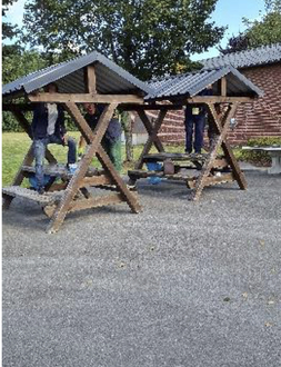 | - | Die Sitzhütten um den Speicher bekamen durch die Helfer Torsten, Rolf, Remo und Arvid neue Farbe. |