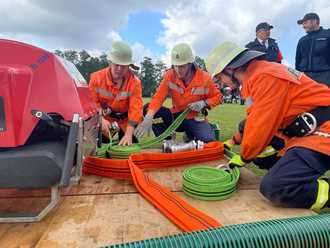 Beim Löschangriff (nass) kommt es ebenso auf Schnelligkeit an. Möglichst zügig müssen Saug- und Druckschläuche gekuppelt werden und Wasser mit der Hilfe einer Tragkraftspritze aus einem Behälter an die Strahlrohre befördert werden, um eine Zieleinrichtung mit Wasser zu füllen. In dieser, hart umkämpften, Konkurrenz trat neben der Feuerwehr Boek-Gorlosen eine weitere Gruppe der Feuerwehr Grabow an. Die Grabower landeten auf dem 20. und das Team aus Boek-Gorlosen auf dem 12. Rang.
