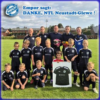Kremmin. Am 24.09.2025 hat unsere F-Jugend ihre tollen neuen Trikots übergeben bekommen. Das Neustädter Traditionsunternehmen Norddeutsche Textil-Logistik sponsort unseren Kleinsten einen kompletten Trikotsatz! Ein großes Dankeschön an Sven Rambow, (Prokurist) und Leroy Kreidemann (stv. Prokurist) und natürlich auch an Maik und Ronny, Trainer der F-Jugend für die Unterstützung und Initiative, dass mit Empor Grabow und NTL als Sponsor nach langjähriger Freundschaft nun zusammenwächst, was zusammengehört.