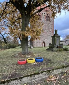 Inspiriert von dem Willkommen-Schild wurde die Idee geboren. Dambeck als erstes Dorf in Mecklenburg-Vorpommern könnte doch die Bewohner, Besucher, Durchreisende, den Fern- und Nahverkehr mit den bunten Farben unserer „Landesflagge“ begrüßen.