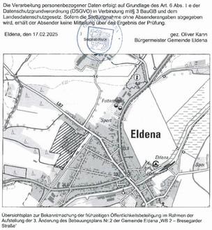 In ihrer Sitzung am 20.10.2022 hat die Gemeindevertretung Eldena den Vorentwurf des Bebauungsplans mit Änderungen gebilligt. Die Änderungen wurden in den Vorentwurf eingearbeitet.