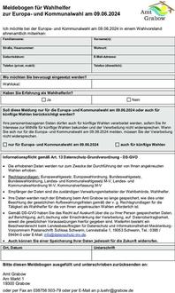 Wir möchten Sie auch in diesem Jahr bitten uns bei der Durchführung der verbundenen Wahlen am 09.06.2024 zu unterstützen, indem Sie als Wahlhelfer mitwirken.