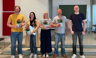Foto neuer Vorstand von links nach rechts: Hans-Heinrich Döscher, Anne Remane, Stefanie Peukert, Olaf Seisselberg mit dem Schulleiter Dennis Iffländer