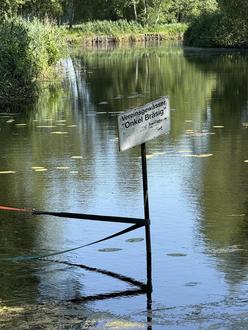 Am 14.06.2025 trafen sich drei Mitglieder des Vereins zu einem Arbeitseinsatz an der ersten und 2.Lache um die beiden Schilder in den Lachen aus den Gewässer zu entfernen. Diese wurden kurz nach der Wende dort aufgestellt. Mit Hilfe einer Handseilwinde konnten diese aus dem schlammigen Grund herausgezogen werden.