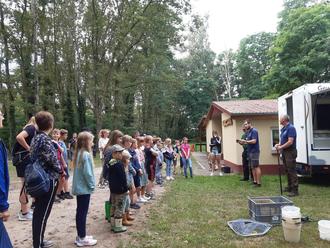 Begrüßung der Ferienkinder durch Diplom - Biologe Herrn Christoph Witte vom Landesanglerverband M-V e. V.