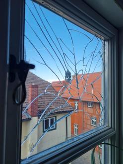 Es wurden so nach und nach insgesamt acht Fensterscheiben eingeschlagen. Nachdem wir schon vier Scheiben erneuert haben und hofften der Spuk sei vorbei, sind in letzter Zeit erneut vier weitere Scheiben eingeschlagen worden. Natürlich sind neben hohen Kosten für die Reparatur der Scheiben auch Ängste bei uns und den Mietern entstanden denn das kann ja auch mal, im wahrsten Sinne des Wortes, „ins Auge gehen“.