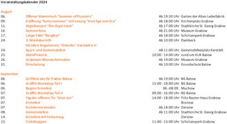 | 06. | Beginn Erntefest | 06. - 08.09. | Muchow |