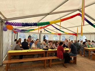 Bereits am Nachmittag füllte sich das Festzelt mit fröhlichen Gästen. Dank der hervorragenden Organisation, bei der alle Beteiligten Hand in Hand arbeiteten, verlief das Fest reibungslos und bot ein abwechslungsreiches Programm für Jung und Alt.