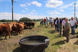 Beim Blick in die unterschiedlichen Herden fällt dabei - auch dem Laien - direkt auf, dass es Nagel eine Variante der Rasse besonders angetan hat: die mit den roten Farbschlägen. Bei den als Red Angus bekannten Tieren ist das kurze und dichte Fell, das den Rindern eine glänzende und gepflegte Optik verleiht, nicht typisch schwarz, sondern rot. Für den Landwirt unterstreiche diese Nuance das ohnehin schon beeindruckende Aussehen der Rinderrasse. Doch nicht (nur) wegen der Schönheit der Tiere entschied sich einst der zum Unternehmensverbund Steesower Agrarland GmbH gehörende ökologisch und im geschlossenen System wirtschaftende Betrieb für die Angus-Zucht. Vielmehr seien es die Rasseeigenschaften: leichtkalbig, frohwüchsig, sehr mütterlich, gute Futterverwertung und beste Fleischqualität. Das passe in Summe am besten zu den hiesigen regionalen Bedingungen - leichte Böden, verhältnismäßig niedrige Regenmengen, übersichtliche Aufwüchse auf dem Grünland und Acker -, erläutert Nagel den Teilnehmern der mehrtägigen Züchter-Fachreise, die so zum ersten Mal in Deutschland stattfindet. Und weil die genügsamen, umgänglichen und anpassungsfähigen Rinder aus ganz wenig sehr viel machen könnten, gibt es für den leidenschaftlichen Fachmann „nichts Besseres als Red Aberdeen Angus“.