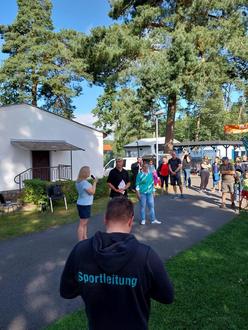 Der Wettergott spielt mit und die Triathleten sind startklar. Die erste Station war das 50 Meter Becken. Mit lauten Tröten und der Sonne am Himmel, sind die Sportlerinnen und Sportler 10:00 Uhr ins feuchte Nass gesprungen. Das Ziel: die nötigen 12 Runden, also 600 Meter, schnellstmöglich durchzukraulen. Im Anschluss galt es 28 Kilometer mit dem Rad zu bezwingen und zum Abschluss fünf Kilometer zu laufen. Und das Ganze entweder allein oder in einem Team mit mehreren Sportlern. Für das Staffelrennen hatten sich in diesem Jahr 12 Teams mit jeweils drei Teilnehmern eingeschrieben.