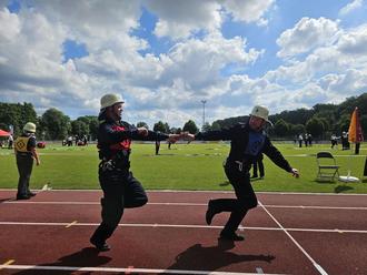 Der Wettbewerbssamstag startete etwas früher aufgrund der offiziellen Eröffnung. Im fünften Wertungslauf wurde es dann spannend. Nach 54,37 Sekunden war der Löschangriff absolviert. Fehler, die jedoch ausblieben, führen zu Strafsekunden. Darauffolgend nahmen acht Läufer ihre Plätze auf der 400m-Bahn für den Staffellauf ein. Nach 60,60 Sekunden stoppte die Anzeige im Zieleinlauf.