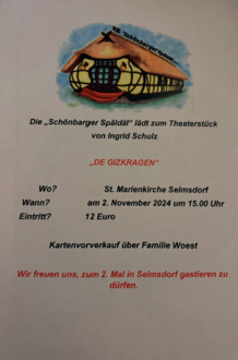 | 10.30 Uhr | Gottesdienst zum Volkstrauertag, St. Marienkirche Selmsdorf |