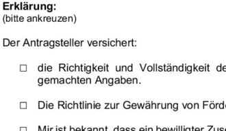 | 1.2.3 | Zuwendungen werden nur gewährt, wenn der Antragssteller einen Eigenanteil erbringt. Dieser ist im Antrag auszuweisen. |