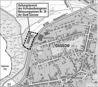 Der räumliche Geltungsbereich des vorhabenbezogenen Bebauungsplanes Nr. 39 der Stadt Dassow für den Penny Markt ist dem nachfolgenden Übersichtsplan zu entnehmen.