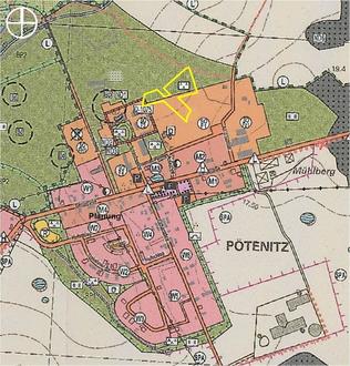 Der Geltungsbereich der vereinfachten Änderung des Flächennutzungsplans (FNP) betrifft einen kleinen Bestandteil der Schloss Pötenitz gehörenden denkmalgeschützten Gartenanlage. Gleichzeitig ist der Änderungsbereich Bestandteil der in Aufstellung befindlichen 5. Änderung des Bebauungsplans Nr. 2 „Schlossbereich - Wiesenkamp". Der Änderungsbereich des FNP liegt im Nordosten des Pangebiets.