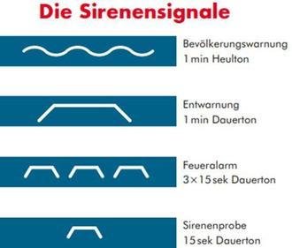 | - | Das Sirenensignal zur Entwarnung ist ein einminütiger Dauerton. |