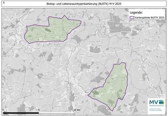 Im Jahr 2025 erfolgen Kartierungen in ausgewählten Bereichen außerhalb von FFH-Gebieten. Hierbei werden auch die nach Anhang I der Richtlinie 92/43/EWG (FFH-Richtlinie) geschützten Lebens- raumtypen (LRT) erfasst und bewertet. Die Lebensraumtypen bestehen weitestgehend aus gesetzlich geschützten Biotopen. Weitere Informationen zu geschützten Biotopen und FFH-Lebensraumtypen in M-V erhalten Sie auf der Homepage des LUNG: