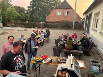 Kaum hatte sich im Juli die neue Gemeindevertretung konstituiert, kam sofort der Wunsch auf, einmal Danke zu sagen bei der vorherigen Gemeindevertretung, dem Bürgermeister Detlef Schranck und den sachkundigen Einwohnern. Dies wurde am 19.09.2024 nach der Konstituierung des Finanzausschusses umgesetzt. Auch der Wettergott unterstützte unseren Abend nach allen Kräften. Das Engagement in der Freizeit für die Gemeinde, oft vor und nach der Arbeit und mit Verzicht auch im privaten Bereich kann gar nicht hoch genug gewürdigt werden. Es war ein sehr kurzweiliger, leckerer Abend, den wir hoffentlich noch lange in Erinnerung behalten. Danke für die Bereitschaft so Vieler sich auch ohne Mandat weiterhin in unserer Gemeinde zu engagieren.