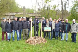 Mitte Dezember 2023 wurde auf dem Friedhof von Grebs (rechtselbisch in der benachbarten „Griesen Gegend“) das verstorbene, mit bald 95 Jahren älteste Mitglied Walter Jacobs des Vereins begraben. Ihm verdanken das Wendland und Interessierte in ganz Deutschland durch sein Buch „Die Wenden zwischen Elde und Sude“(Flüsse) Kenntnisse über diesen Landstrich und seine Geschichte der letzten 1000 Jahre. In Abstimmung mit den verhinderten Vereinsvorsitzenden Ernst Stelte und Dr. Arne Lucke folgten die beiden Wendenfreunde Bernd Bruno Meyer und Diethard Gnade der Einladung von Detlef Schranck, Bürgermeister von Grebs-Niendorf, zu einer besonderen Feierstunde auf dem Gelände des „Menkendorfer Walls.“ Der liegt allerdings (wie ausgeschildert) in einiger Entfernung vom Dorf. Dabei sind es sogar zwei (Verteidigungs)Wälle: Zunächst der eine – durch eine am Waldrand noch als solche trotz umstehender Laubbäume gut erkennbare kreisförmige tiefe Mulde… also der echte Wall. Und nach Durchqueren einer etwas feuchten Dickung steht man dann vor einem mit Palisaden und Wehrgang bestückten begehbaren Wall mit Durchlass und sich anschmiegenden Gebäudeteilen. Bevor sich der Blick über weite Grasflächen bis zum Flüsschen Rögnitz öffnet, bleibt er hängen an einer recht hohen, mächtigen, dem heidnischen Gott Swantewit gewidmeten, geschnitzten Holzsäule. Und endlich in der Sichtachse dahinter wiegt sich neuerdings dank der Bemühungen von Detlef Schranck und noch rechtzeitig zum Frühjahr gepflanzt eine junge Linde im Wind.