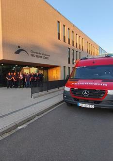 Eine wichtige Rolle spielte auch die Ortskunde für die Führungskräfte der Führungsgruppe. Der Hausmeister der Schule, Herr Tutas, beantwortete alle wichtigen Fragen und zeigte den Teilnehmern einsatzrelevante Räume.