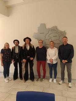 Umso mehr waren wir erfreut, als Ende April diese zwei jungen Männer, gekleidet mit breitgekrempten, schwarzen Hut, der schwarzen Manchesterhose, einem Bündel aus Tüchern und ihrem kunstvoll geschnitzten Wanderstock, an die Türen unserer Verwaltung klopften und mit dem typischen Spruch der Wandergesellen um Einlass, Gunst und Verlaub baten.