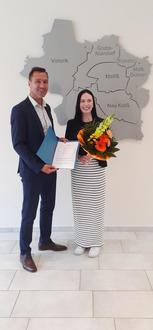 Aus den Händen vom Leitenden Verwaltungsbeamten, Ronny Schult, bekam sie ihren Ausbildungsvertrag, mit den besten Wünschen für eine interessante und erfolgreiche Ausbildung.