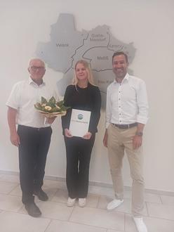 Aus den Händen von Amtsvorsteher, Burkhard Thees und dem Leitenden Verwaltungsbeamten, Ronny Schult, bekam sie ihren Ausbildungsvertrag, mit den besten Wünschen für eine interessante und erfolgreiche Ausbildung.