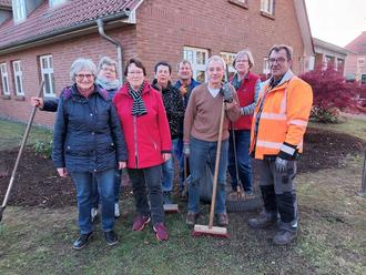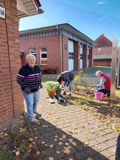 Die anfallenden Arbeiten, wie Rosenbeete reinigen, Sträucher schneiden, Blumenkästen leeren und mit Heidekraut neu bepflanzen, Laub harken und Gehwege fegen, wurden mit viel Elan ausgeführt. Dabei kam der Spaß nicht zu kurz und es wurde viel gelacht.