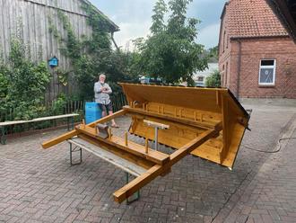 Gebaut wurde das Gestell in den vergangenen Monaten von Wolfgang Gresens, der mit großem handwerklichem Geschick und Geduld das Projekt umgesetzt hat. Unterstützt wurde er von zahlreichen Helferinnen und Helfern aus dem Dorf, die Material beisteuerten, beim Streichen halfen oder mit anpackten, wenn es galt, das Dach aufzusetzen. Das Ergebnis kann sich sehen lassen: Ein fester, funktionaler und zugleich ansprechender Platz, der die Arbeit auf dem Friedhof erleichtert und die Gemeinschaftsleistung vieler Dorfbewohner sichtbar macht.