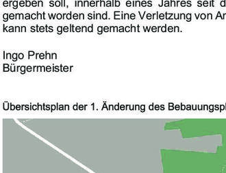 Die 1. Änderung des Bebauungsplans Nr. 2 „Wohnbebauung zum Roder“ tritt mit der öffentlichen Bekanntmachung in Kraft.