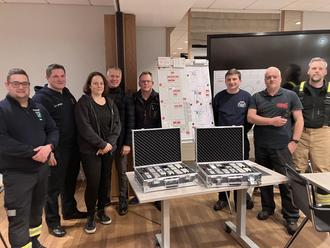 Gleichzeitig haben die Kameraden die Möglichkeit genutzt, sich mit dem verspäteten Weihnachtsgeschenk vertraut zu machen. In der Planung zur Ausstattung hatte sich die Amtswehrführung mit dem Amt dazu entschlossen, alle drei Führungsfahrzeuge mit neuen Taktiksätzen auszustatten. Diese neuen Koffer mit taktischen Zeichen sollen die Einsatzleitung unterstützen, die Lage noch schneller und übersichtlicher für alle darzustellen. Die Übergabe erfolgte höchst persönlich durch den Amtsvorsteher Herrn Maty an den Amtswehrführer, zur gleichen Zeit nutzte der Amtsvorsteher die Gelegenheit sich ein Bild von der Arbeit und Ausbildung zu machen.