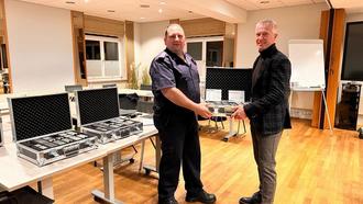 Übergabe neuer Taktiksätze an Steven Böbel, Amtswehrführer durch Holger Maty, Amtsvorsteher
