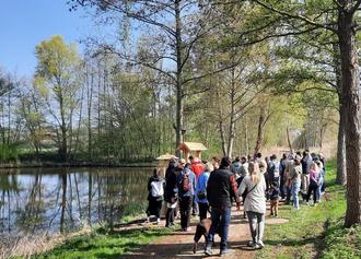 Hagenow, 17. April 2025 | Raus in die Natur, Abenteuer erleben und spielerisch die Umwelt entdecken: Mit „Pilzy’s Naturerlebnispfad“ haben der Tourismusverband Mecklenburg-Schwerin e. V. und die Stadt Hagenow heute den ersten von drei neuen Familienwanderwegen eröffnet. Rund 80 Personen, darunter 50 Kinder, kamen zur feierlichen Eröffnung.