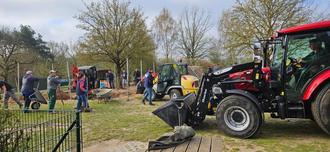Radelübbe. Am Samstag, den 12. April, herrschte emsiges Treiben auf dem Gelände der Kita Zwergenland: Eltern und Erzieherinnen rückten gemeinsam an, um den in die Jahre gekommenen Sandkasten zu erneuern – mit tatkräftiger Unterstützung und sogar schweren Geräten.