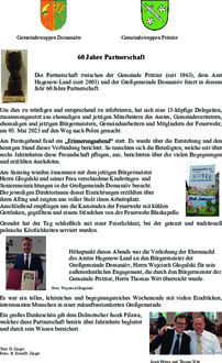 Die Partnerschaft zwischen der Gemeinde Pritzier (seit 1963), dem Amt Hagenow-Land (seit 2001) und der Großgemeinde Domanióv feiert in diesem Jahr 60 Jahre Partnerschaft.